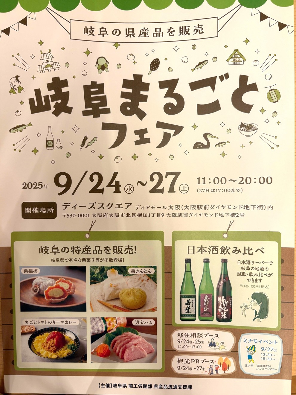ディアモール大阪にて岐阜県主催「岐阜まるごとフェア」開催中!